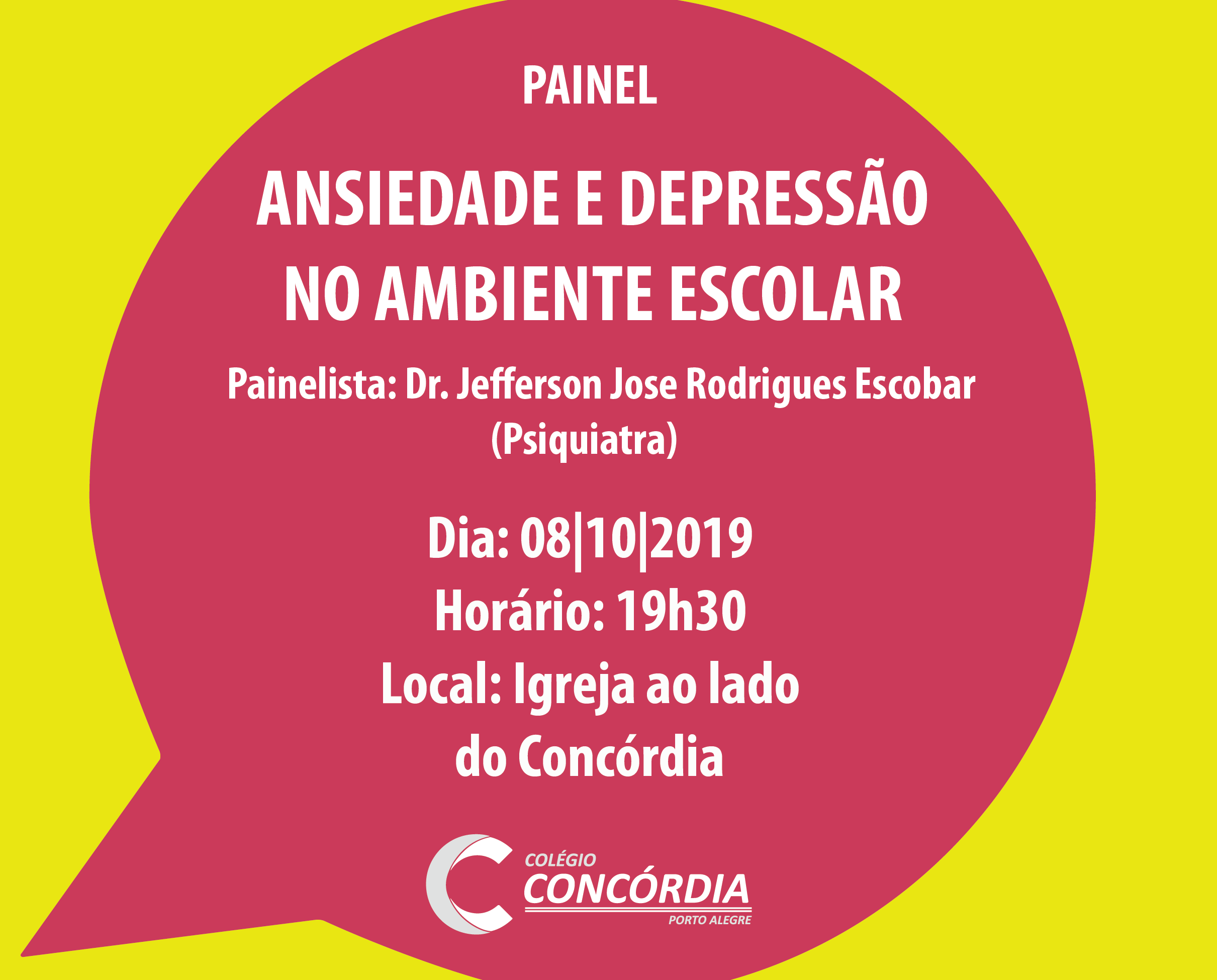 O Concórdia promove, no dia 08/10, o painel “Ansiedade e Depressão no ambiente escolar”. O evento é destinado a estudantes, pais, professores e comunidade escolar no geral e busca proporcionar um espaço de diálogo e esclarecimento de dúvidas sobre o tema, presente no dia a dia dos espaços escolares.