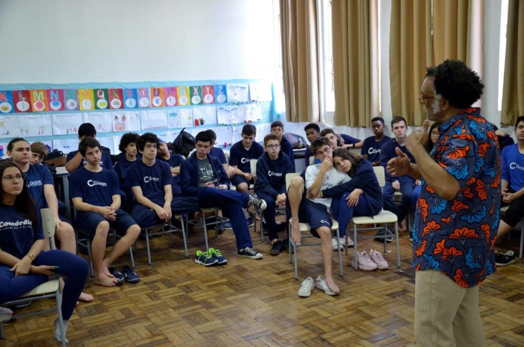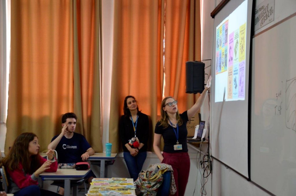 Na segunda-feira, 11/11, a programação iniciou com um bate-papo com parte da equipe de “O Oráculo das Borboletas”, série que teve como espaço de gravação a sede do Colégio Concórdia – as filmagens ocorreram no recesso de 2019. A equipe da série esteve presente em diversas atividades da FLICC, ministrando oficinas de roteiro, documentário e montagem audiovisual. As oficinas foram recebidas pelo Colégio como contrapartida pelo espaço cedido para a gravação da série. Os estudantes tiveram a oportunidade de entender como se dá a produção, a criação de um roteiro e a montagem de um produto audiovisual e, além disso, puderam assistir à parte dos episódios da série, que ainda não foi ao ar.