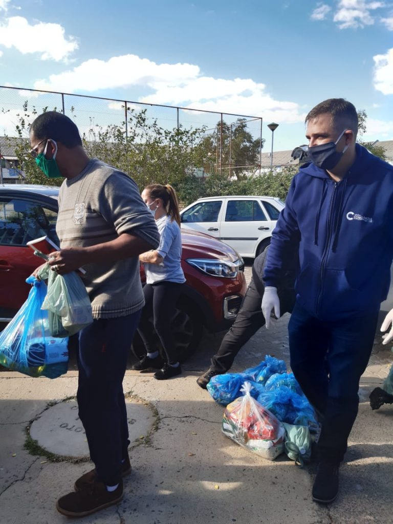 O Diretor do Colégio Concórdia, Gerardo Sammarco, e o Orientador Educacional e Vice-presidente da COOPEEB, Hélio Alabarse, realizaram na tarde de hoje, 25/05, a entrega das cestas básicas com alimentos arrecadados nas últimas semanas. A ação foi uma iniciativa em parceria com a COOPEEB, mantenedora do Colégio Concórdia. Os mantimentos foram entregues para moradores da Vila Farrapos. O Concórdia agradece a toda comunidade escolar que mais uma vez colaborou com as arrecadações, demonstrando seu empenho em ações de cooperação.