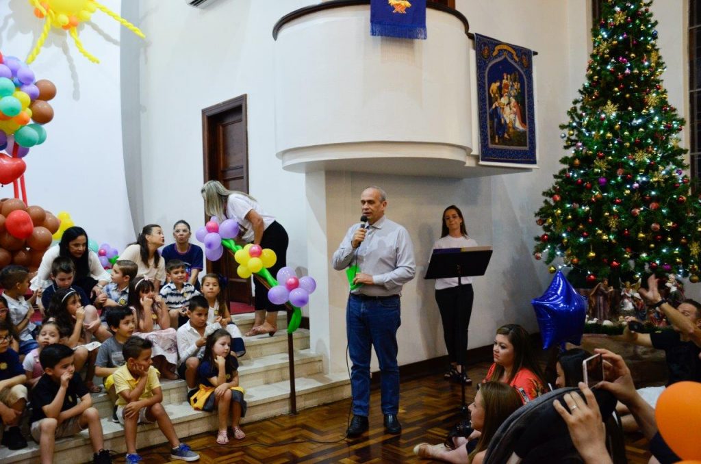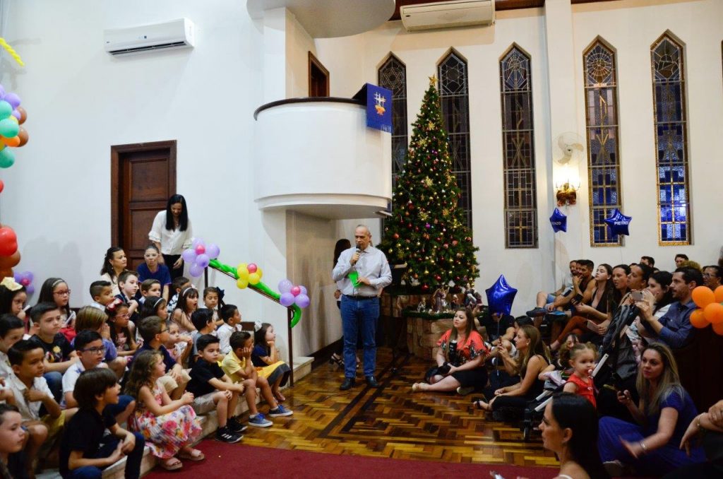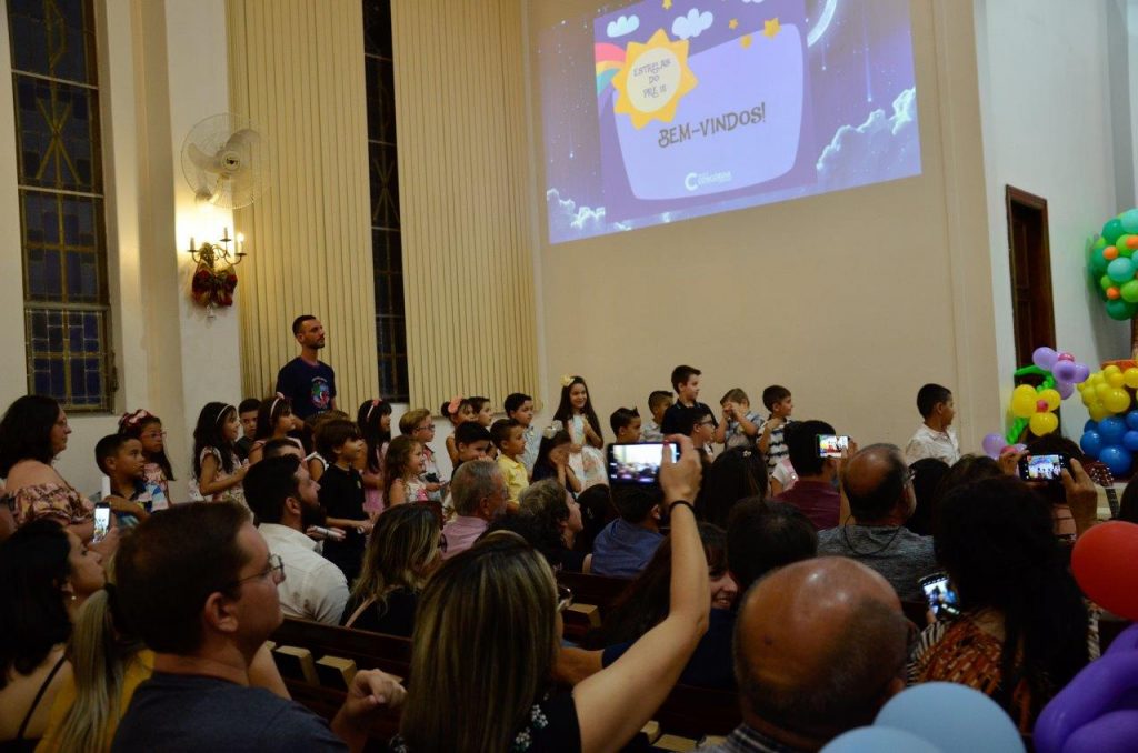 Aconteceu na noite de terça-feira, 10/12, a Festa de Encerramento do Ano Letivo do Pré III do Colégio Concórdia. O momento marcou o encerramento de um ciclo na vida dos pequenos estudantes, chamados, na noite, de “Estrelas do Pré III”. Os alunos foram recepcionados pelos familiares e pelas professoras do Concórdia. Depois disso, fizeram apresentações de música para os presentes e receberam títulos definidos entre as turmas: cada um foi escolhido como um tipo diferente de estrela – amiga, corajosa, alegre, amorosa, etc. No final do evento, o Diretor do Concórdia, Gerardo Sammarco, relembrou o percurso dos estudantes na Educação Infantil e destacou a premiação do segmento no Salão UFRGS Jovem de 2019.