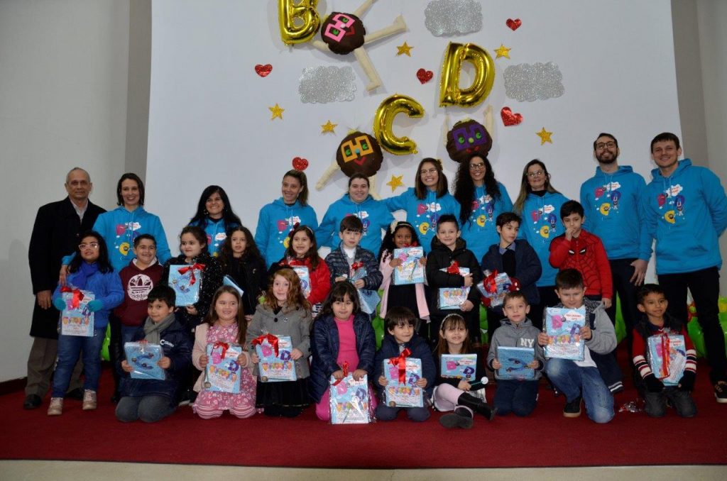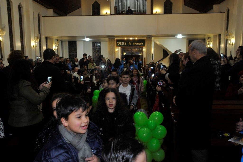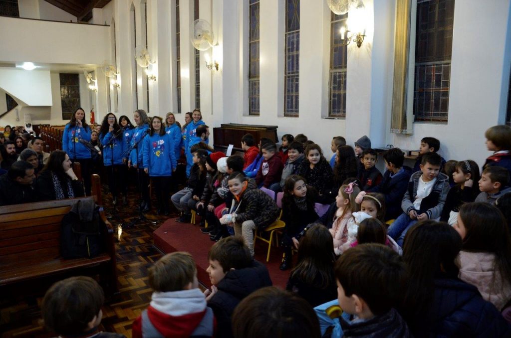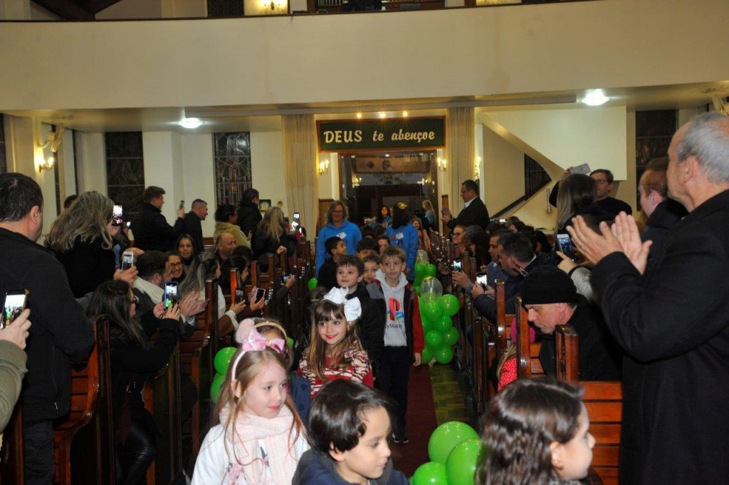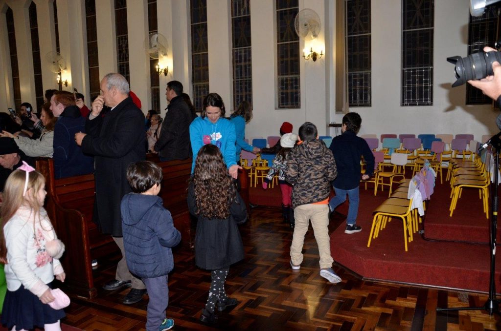 Na noite, a comunidade escolar se reuniu na Igreja ao lado do Concórdia. Os alunos e alunas assistiram a falas e apresentações dos professores e, no final da noite, junto de sua família, receberam o primeiro caderno.