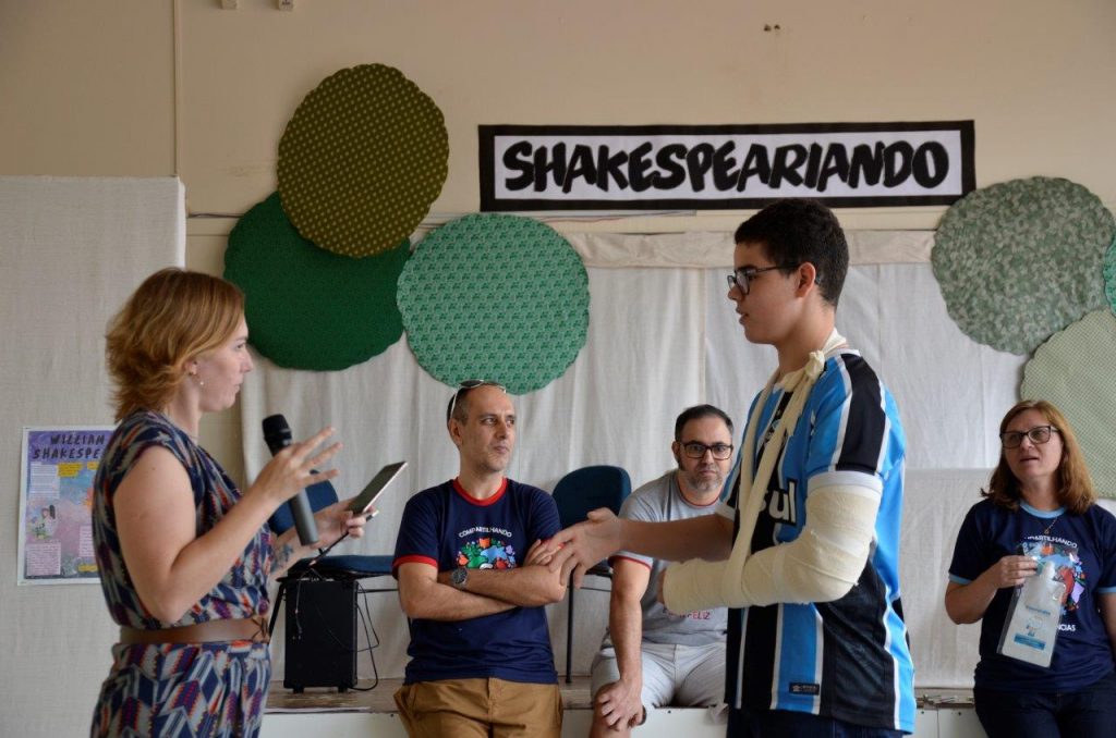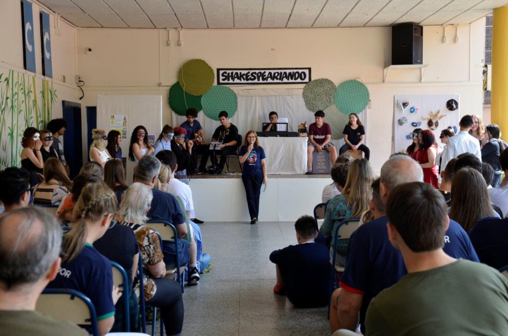 A Festa Literária do Colégio Concórdia iniciou na manhã do último sábado, 09/11, com atividades que envolveram as turmas do Ensino Fundamental II e do Ensino Médio. O grupo assistiu à releitura de dois espetáculos musicais baseados na obra de William Shakeaspere – Romeu e Julieta e A Megera Domada – apresentados pelas turmas do 1º ano do Ensino Médio. Ao mesmo tempo, aconteceu uma oficina de Quadribol,  ministrada pelo ex-aluno do Concórdia, Christian Kern. Ao fim da manhã, a equipe de professores da FLICC conduziu um Quiz Literário, que premiou os estudantes e o público presente.